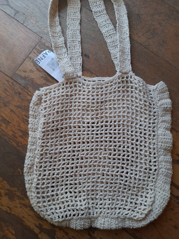 Tote bag tejida en algodón crudo. Hay una sola. Asas tejidas en el mismo algodón.