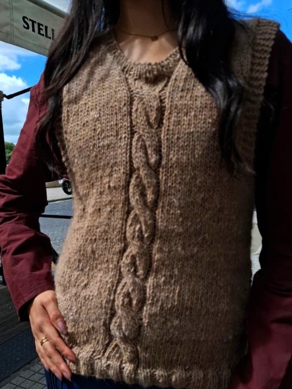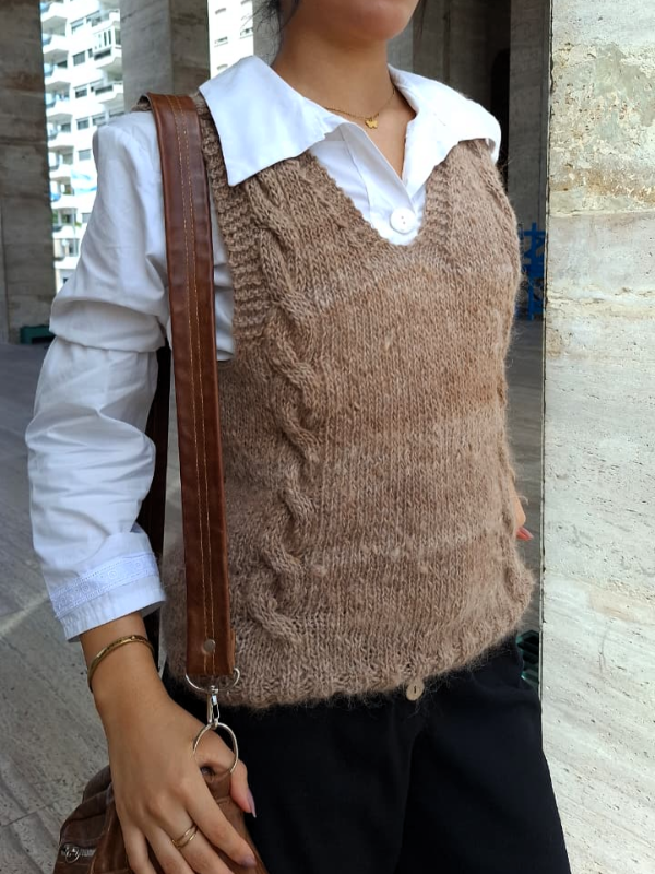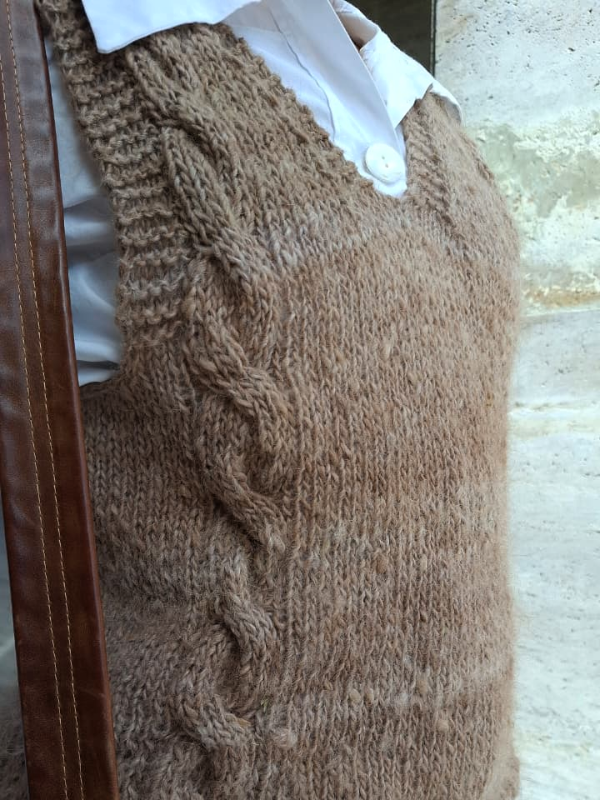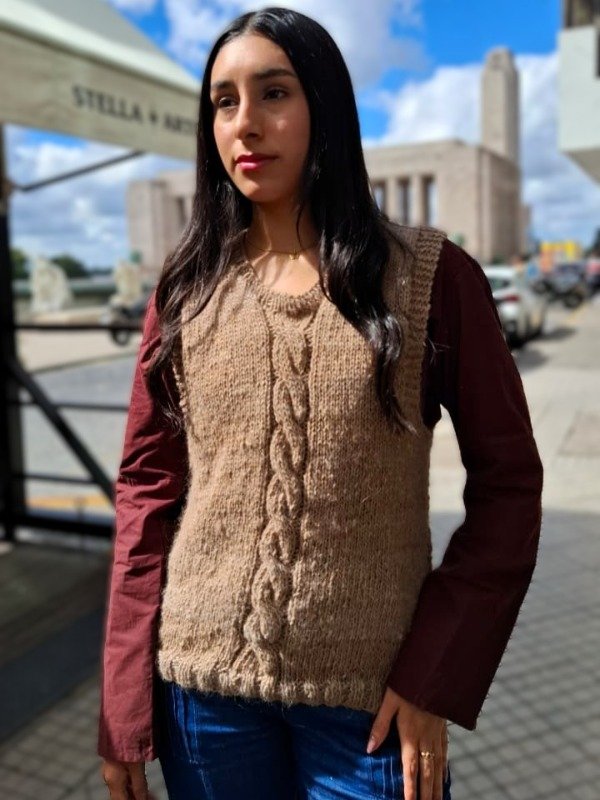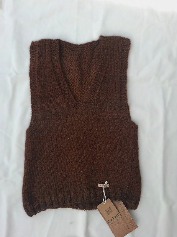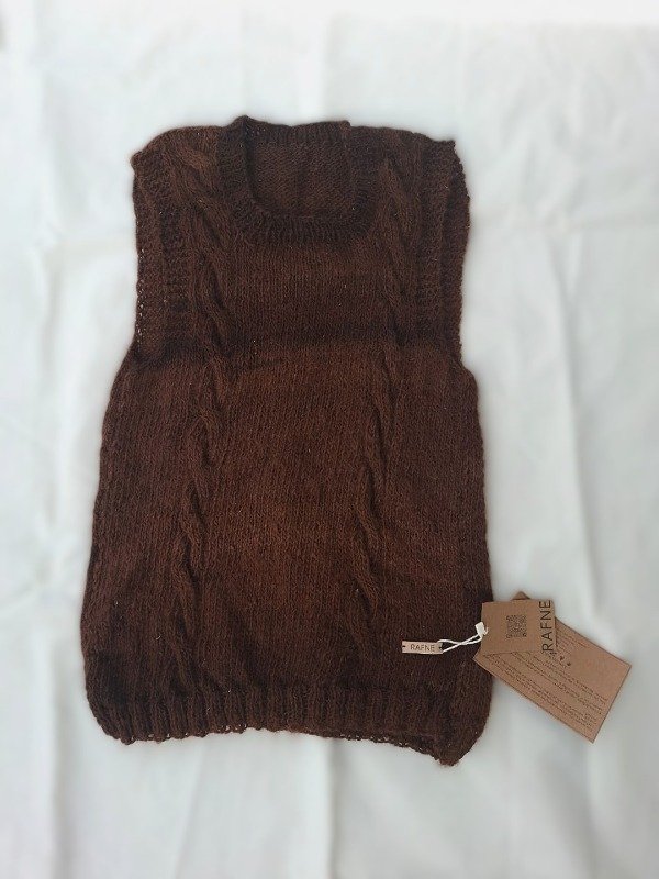 Calce recto y amplio. Sisas amplias. Diferentes motivos que hacen que cada chaleco sea especial y diferente, viene en chocolate y jaspeado natural.
